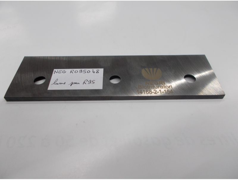 Couteau d'origine NEGRI. Se monte sur les broyeur R95. Longueur 150mm, largeur 50mm, trois trous de fixation M8 à 120mm